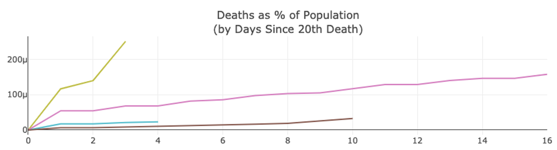 The Netherlands currently has the worst percentage of population death curve of any country on this list. On day three since seeing its 20th death, 0.00025% of its population has died from COVID-19. This is two days earlier than when Spain hit the same percentage. Four days earlier than Italy. Nine days earlier than Iran. No other country on the list has reached that percentage.