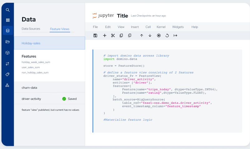 Domino’s new feature store is now generally available and enables data scientists to securely create, publish, and share features so they can be discovered and reused. The Domino feature store acts as a central hub for feature data and metadata across an ML project’s life cycle, including: