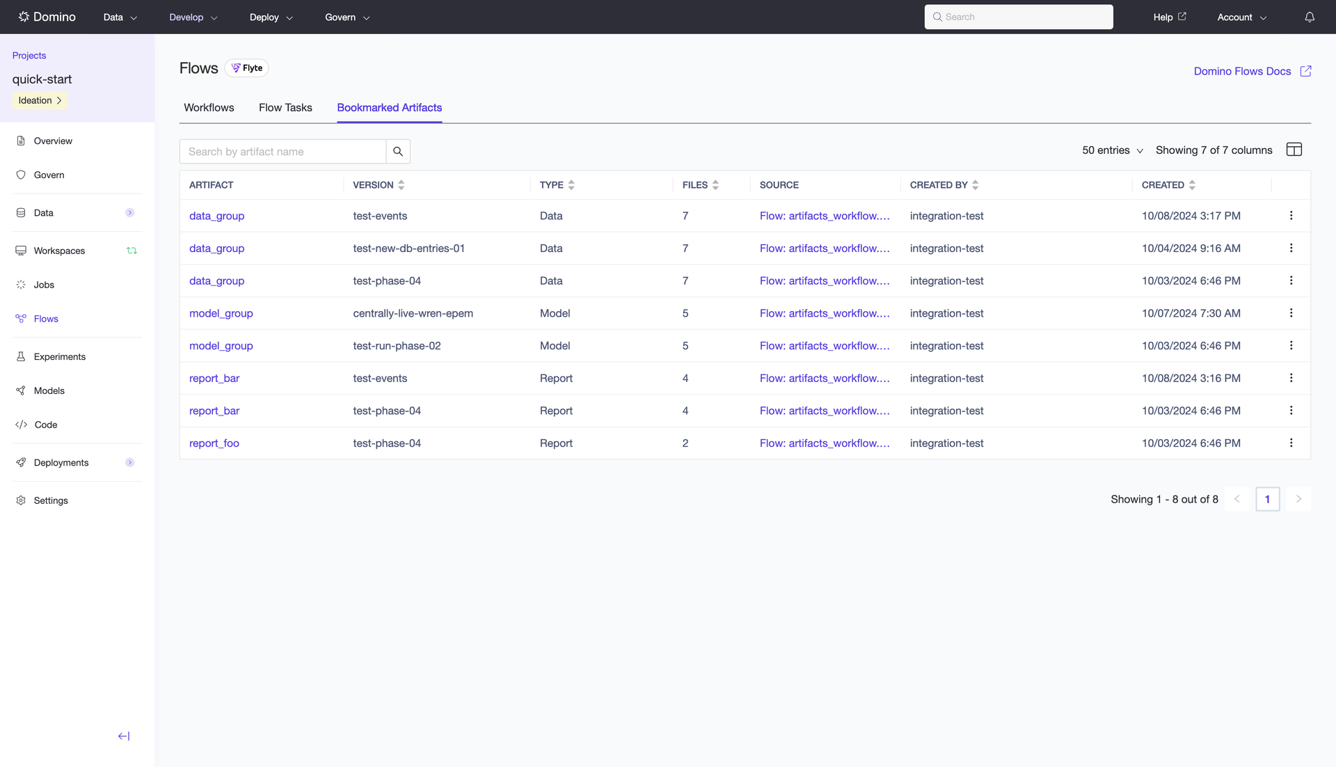 Quickly accessing critical outputs — like models, datasets, or reports — is crucial in fast-paced enterprise AI environments. Domino’s artifact bookmarking feature allows users to flag essential outputs during flow execution for easy access and collaboration.