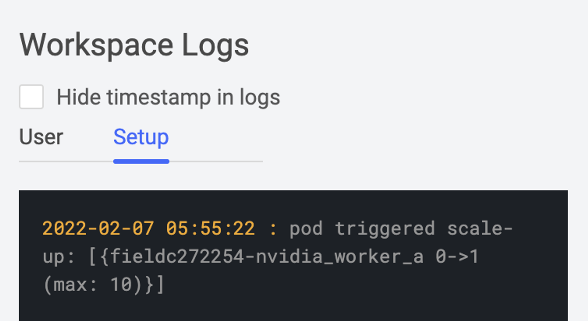 Creating this workspace will trigger a scale up of the GPU compute node from 0 -> 1. (Figure 3)