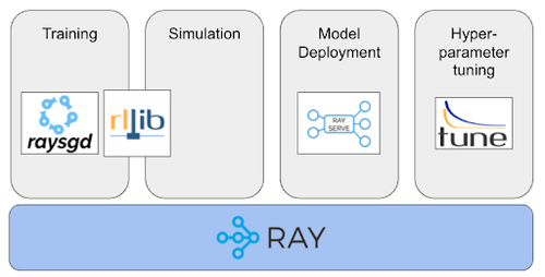 Ray is another project from UC Berkeley with a mission to "simplify distributed computing". Ray consists of two major components - Ray Core, which is a distributed computing framework, and Ray Ecosystem, which broadly speaking is a number of task-specific libraries that come packaged with Ray (e.g. Ray Tune - a hyperparameter optimization framework, RaySGD for distributed deep learning, RayRLib for reinforcement learning, etc.)