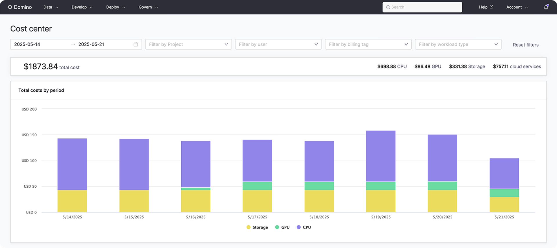 - Designed for data science workflows. Domino is built from the ground up for AI and ML. Our cost visibility tools reflect this specialization. We give you the insights that truly matter for this specific type of spend across platforms.