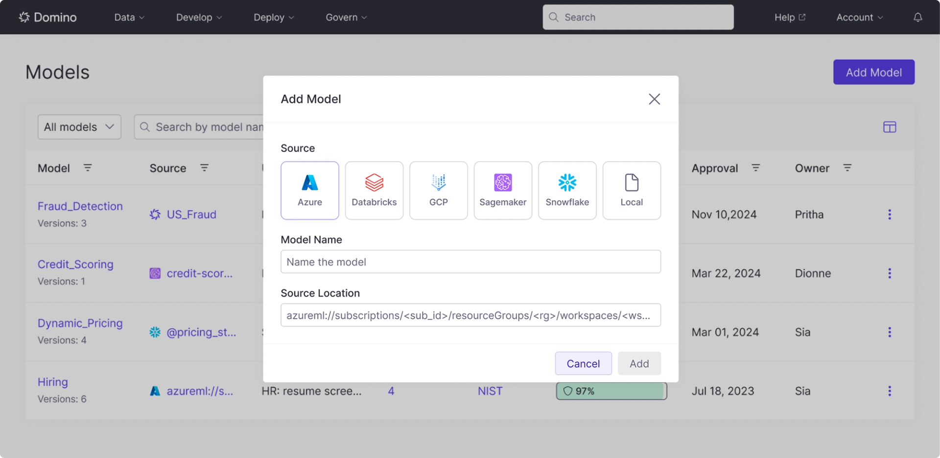 Most teams don’t build every model in the same platform. But that doesn’t mean governance should stop at the tool boundary. Now, teams can import models built outside Domino into the model registry. From there, they can apply the same policies, approvals, and tracking as any other model.