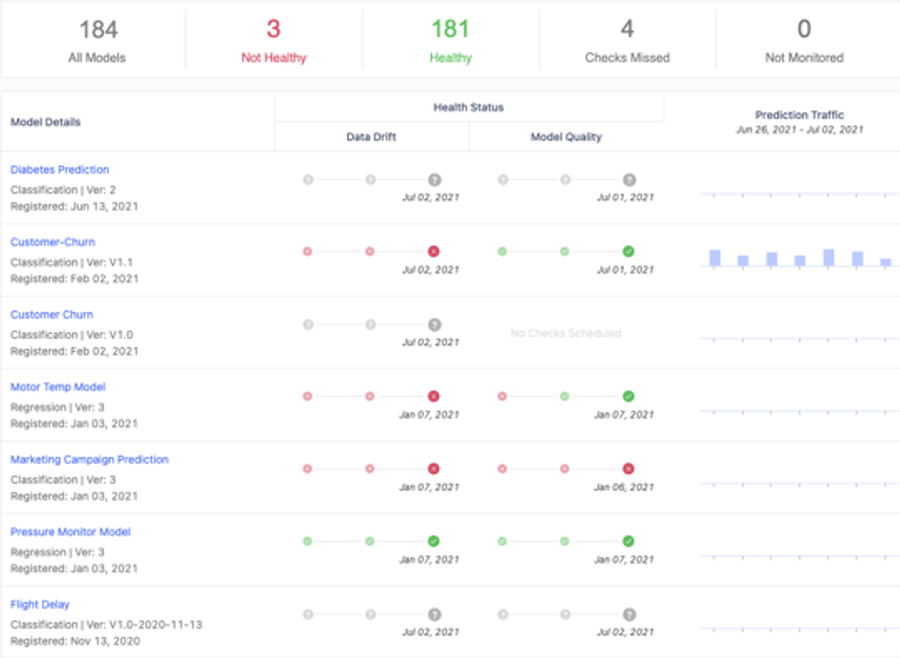 Respond Immediately: View all deployed models and their performance characteristics from a centralized dashboard so you can take corrective action.